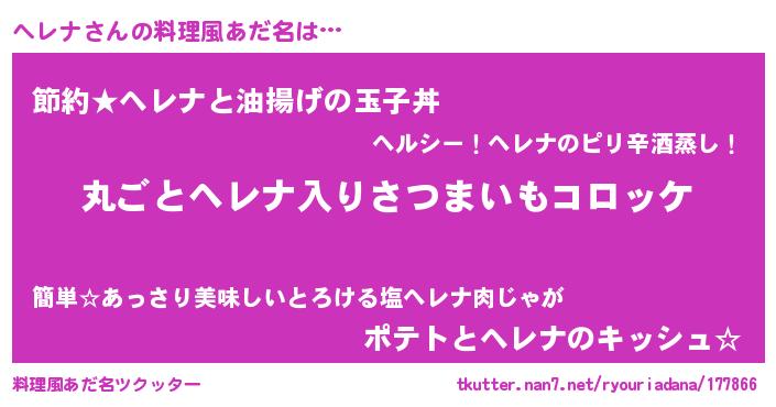 | ヒーロー風カッコイイあだ名 | 『仮面ヘレダー』『スーパーヘレナ』 |