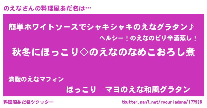 | 意味不明あだ名 | 『とにかく怪しいのえな』『自称のえな』 |