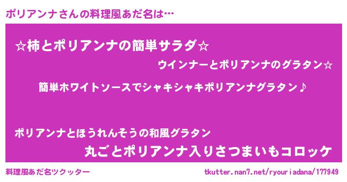 | 男性向けラノベタイトル風あだ名 | 『ポリアンナの嫁は女の子じゃないと思った?』 |