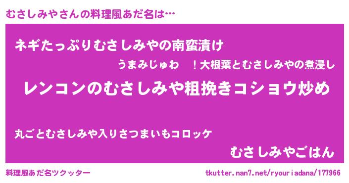 | 胡散臭い通販商品みたいなあだ名 | 『テレビで話題の冬虫夏草…その名も「むさしみや」』 |