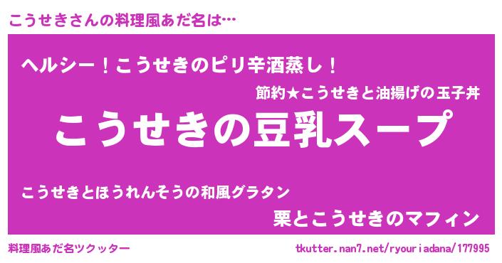 | ピコ太郎風あだ名 | 『コウ二郎』『ココ五郎』『ココ太郎』 |
