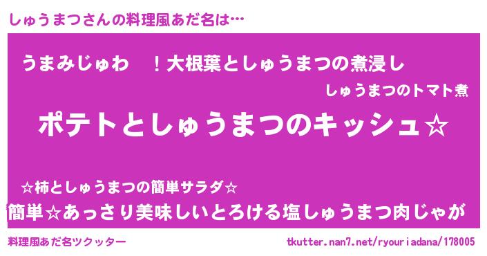 | ポケモン風あだ名 | 『ヒシュウマツ』『シュウダネ』 |