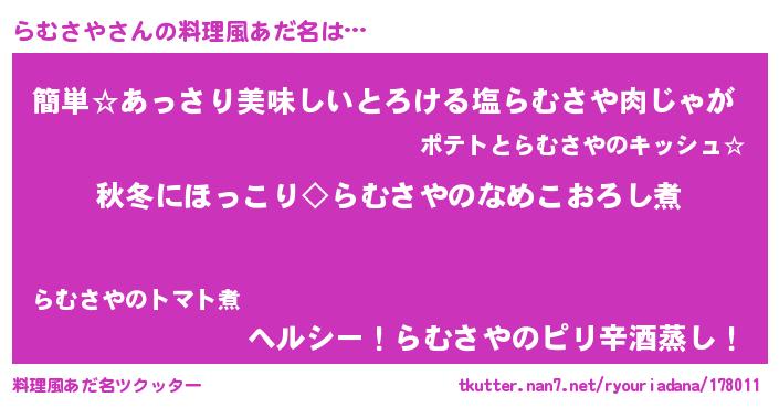 | 意味不明あだ名 | 『永久保存らむさや』『自称らむさや』 |