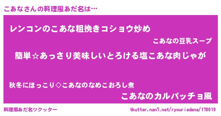 | 意味不明あだ名 | 『永久保存こあな』『自称こあな』 |