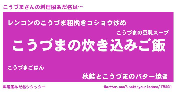 | 意味不明あだ名 | 『自称こうづま』『永久保存こうづま』 |