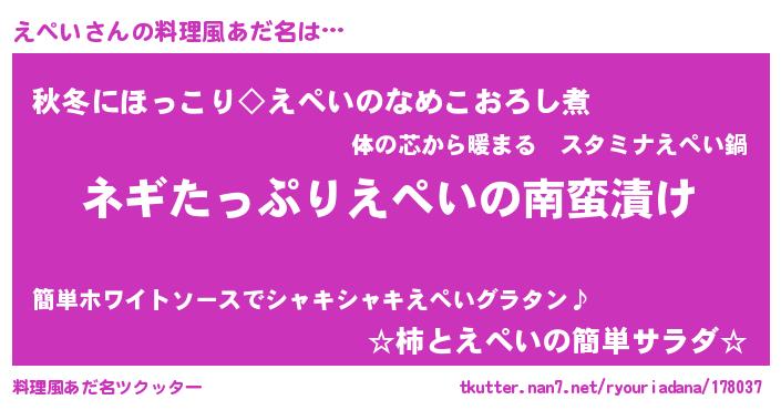 | ヘコむあだ名 | 『えぺもー』『なまこ酢』『えぺお』 |