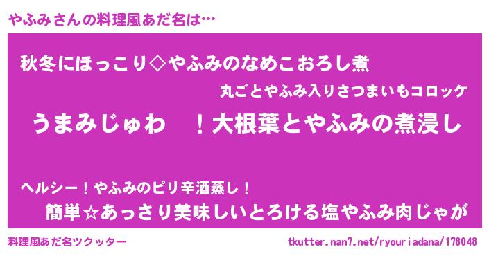 | ヘコむあだ名 | 『酢こんぶ』『やふみ(笑)』 |