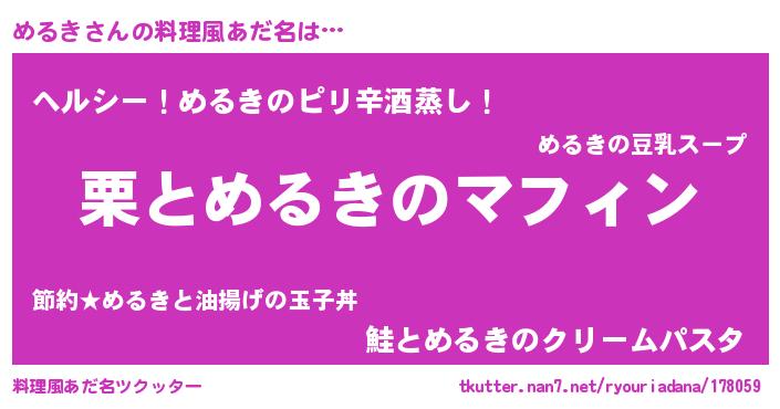 | 意味不明あだ名 | 『自称めるき』『眠気覚ましガムめるき味』 |