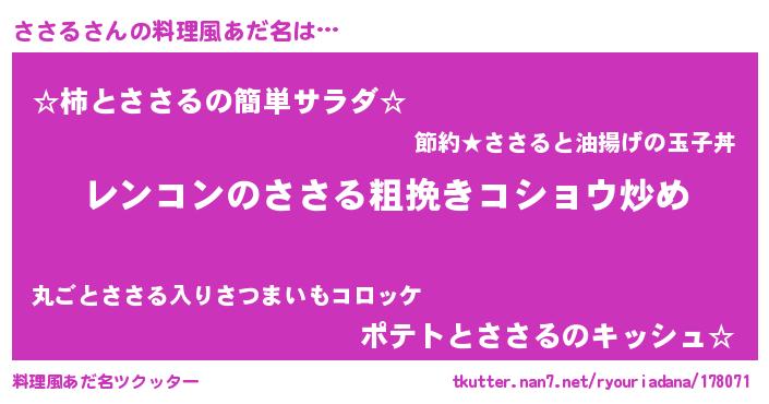 | ピコ太郎風あだ名 | 『ササ一郎』『サコ太郎』『ピサ六郎』 |