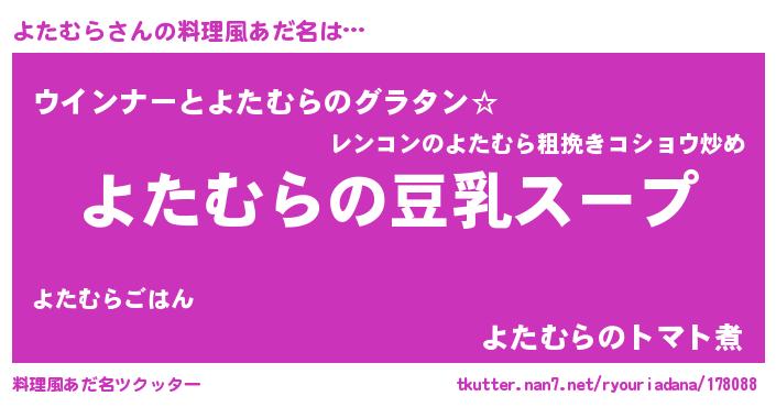 | ピコ太郎風あだ名 | 『ヨタ一郎』『ピヨ六郎』『ヨヨ太郎』 |