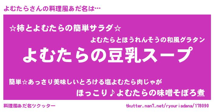 | 胡散臭い通販商品みたいなあだ名 | 『信頼と実績のサプリメント…その名も「よむたら」』 |