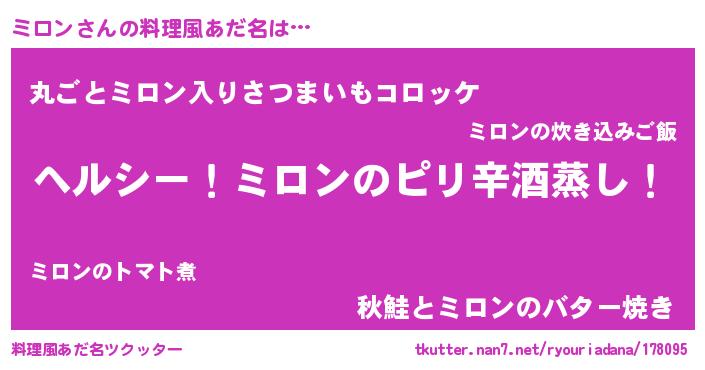 | 男性向けラノベタイトル風あだ名 | 『Re:ミロンから始める異世界生活』 |