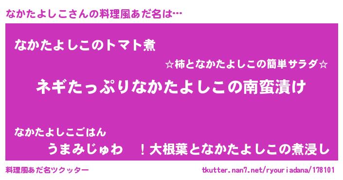 | 男性向けラノベタイトル風あだ名 | 『ナカタヨシコアートオンライン』 |