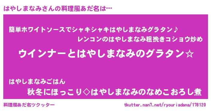 | 胡散臭い通販商品みたいなあだ名 | 『世界が平和になる高級そうな壺…その名も「はやしまなみ」』 |