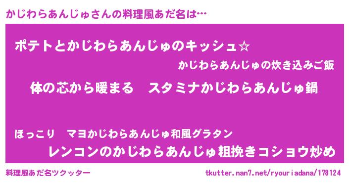 | 男性向けラノベタイトル風あだ名 | 『やはりかじわらあんじゅの青春ラブコメはまちがっている 』 |