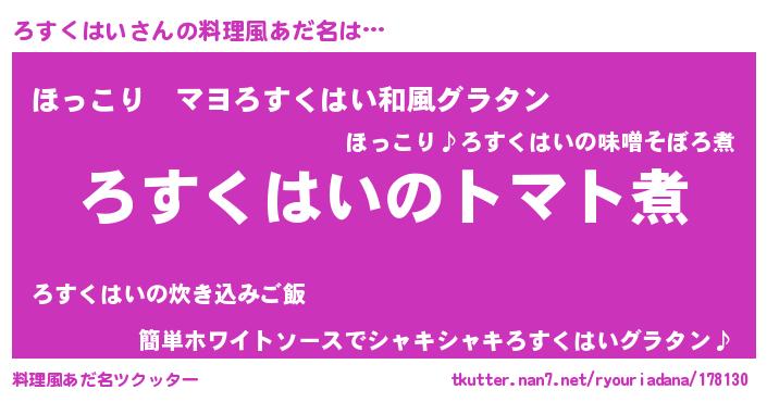 | ヘコむあだ名 | 『ろすっぺ』『ろすにー』『なまこ酢』 |