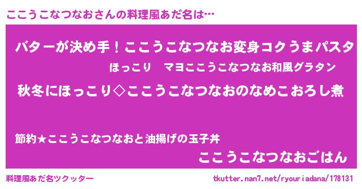 | ヒーロー風カッコイイあだ名 | 『愛の使者ここうこなつなお』 |