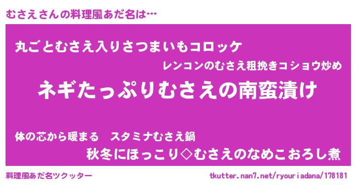 | ヘコむあだ名 | 『むさもー』『なまこ酢』『むさお』 |