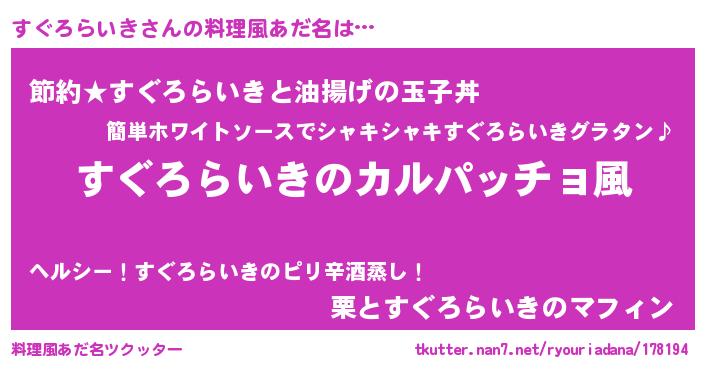 | 意味不明あだ名 | 『住所不定無職すぐろらいき(62歳)』 |