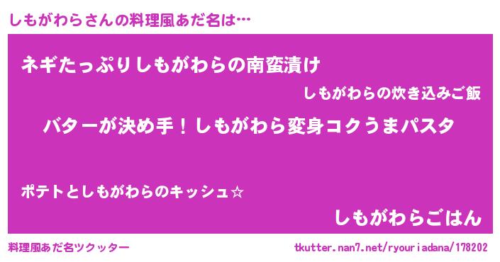 | 女子向けラノベタイトル風あだ名 | 『しもがわら恋絵巻』 |