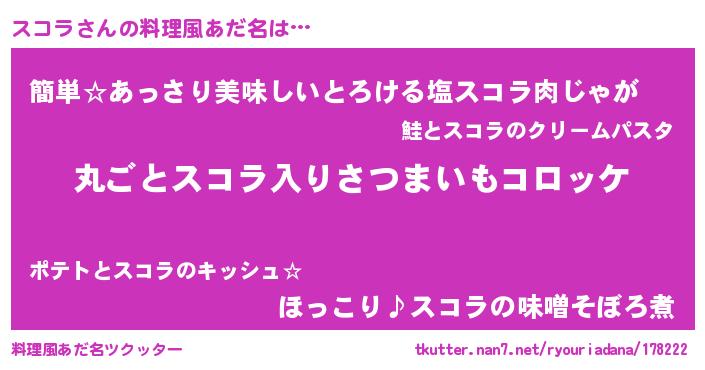 | ヘコむあだ名 | 『スコラ(苦笑)』『スコふぇ~』 |