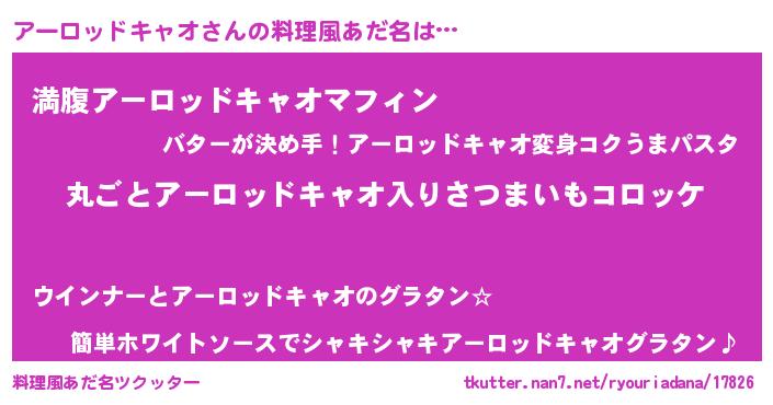 | 女子向けラノベタイトル風あだ名 | 『乙女ゲームの破滅フラグしかない悪役アーロッドキャオに転生してしまった…』 |