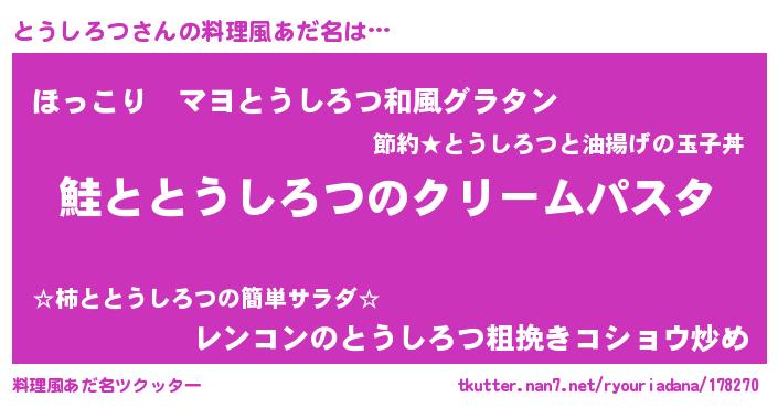 | ヘコむあだ名 | 『とうにゅー』『とうぷりん』『牛乳』 |