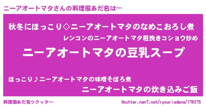 | 女子向けラノベタイトル風あだ名 | 『ニーアオートマタは平凡を望む』 |