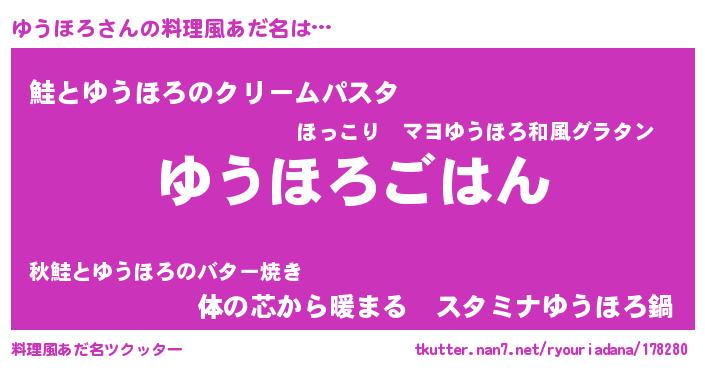 | ヘコむあだ名 | 『豆乳』『ゆうほろ(笑)』『ゆう太郎』 |
