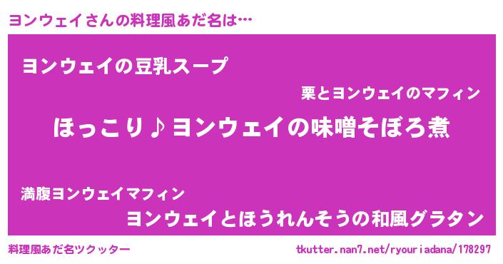 | 女子向けラノベタイトル風あだ名 | 『(仮)ヨンウェイのやんごとなき事情』 |