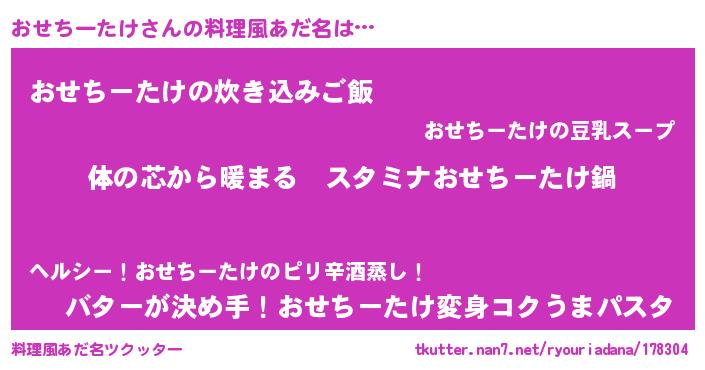 | 男性向けラノベタイトル風あだ名 | 『やはりおせちーたけの青春ラブコメはまちがっている 』 |