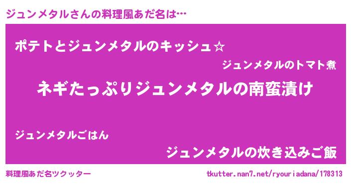 | 胡散臭い通販商品みたいなあだ名 | 『億万長者になれるブレスレット…その名も「ジュンメタル」』 |