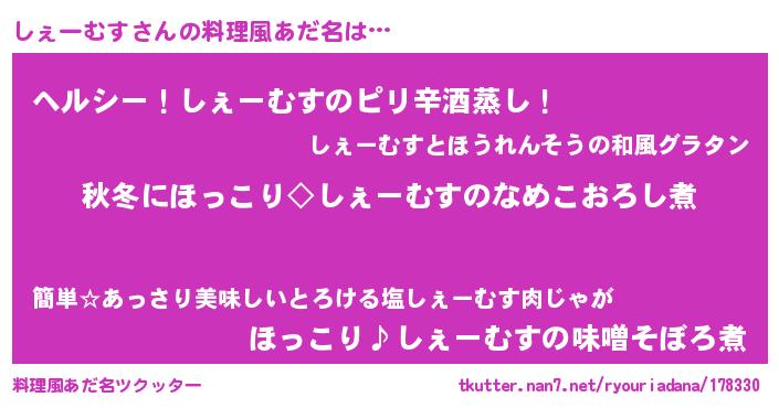 | 胡散臭い通販商品みたいなあだ名 | 『芸能人もオススメする冬虫夏草…その名も「しぇーむす」』 |