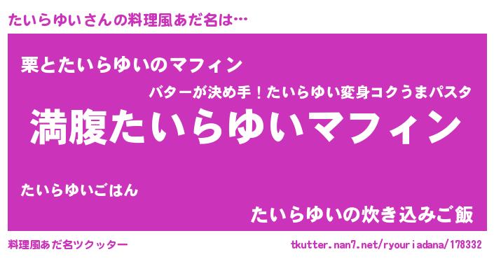 | 胡散臭い通販商品みたいなあだ名 | 『絶対に幸福をもたらす健康食品…その名も「たいらゆい」』 |