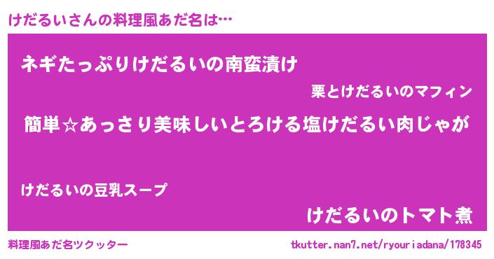 | ヒーロー風カッコイイあだ名 | 『ネオケダルイ』『スーパーケダルイ』 |