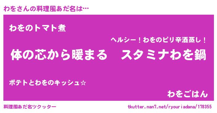 | ポケモン風あだ名 | 『ワヲダネ』『ワックウザ』『ヒワヲ』 |