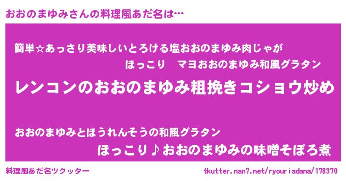 | ヘコむあだ名 | 『おおのまゆみ(笑)』『おおにゅー』 |