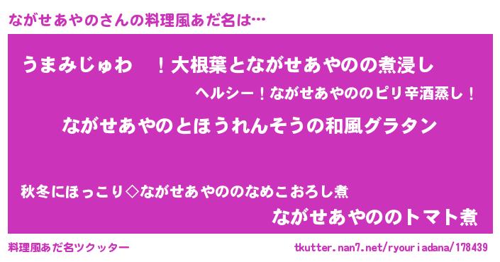 | 肩書あだ名 | 『ながせあやの中将』『ながせあやの総統』 |