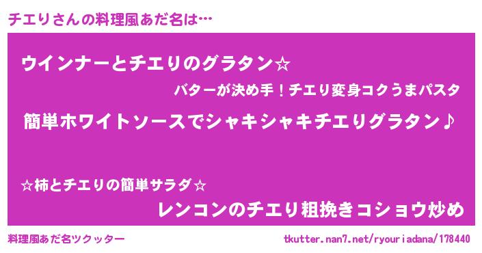 | ヘコむあだ名 | 『チエっぺ』『なまこ酢』 |