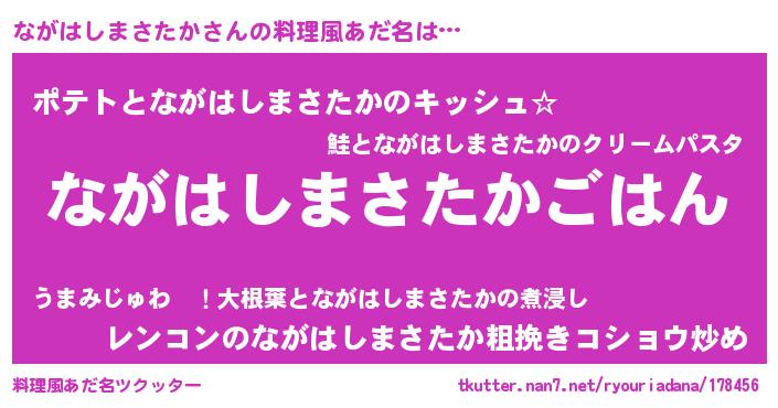 | ポケモン風あだ名 | 『ナガキング』『ヒナガハシマサタカ』 |