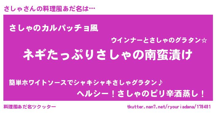 | 意味不明あだ名 | 『ペロリンさしゃ』『自称さしゃ』 |