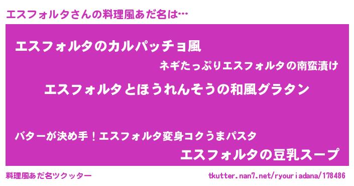 | 女子向けラノベタイトル風あだ名 | 『エスフォルタの玉の輿計画!』 |