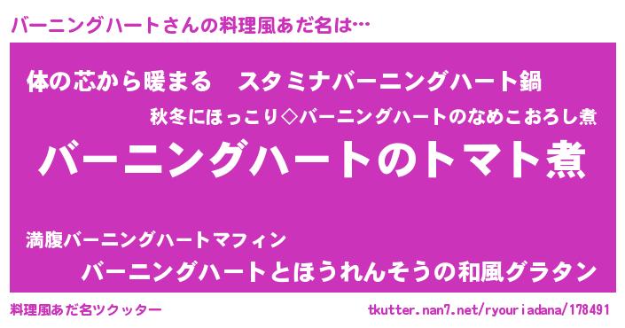 | ヒーロー風カッコイイあだ名 | 『正義の使者バーニングハート』 |