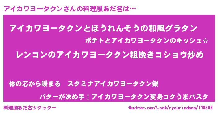| 肩書あだ名 | 『アイカワヨータクン総統』 |