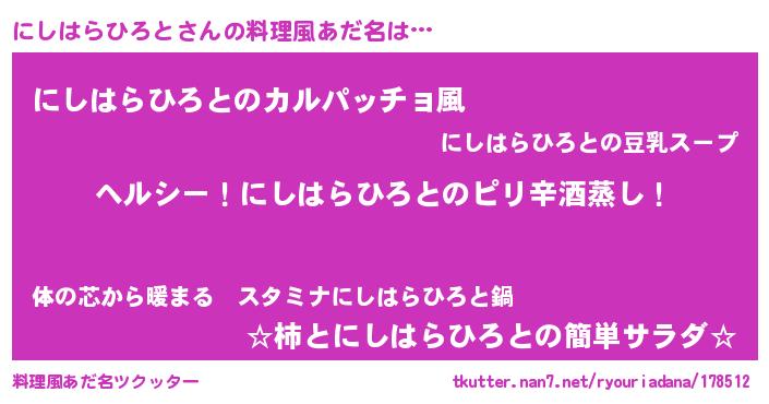 | 意味不明あだ名 | 『自称にしはらひろと』 |