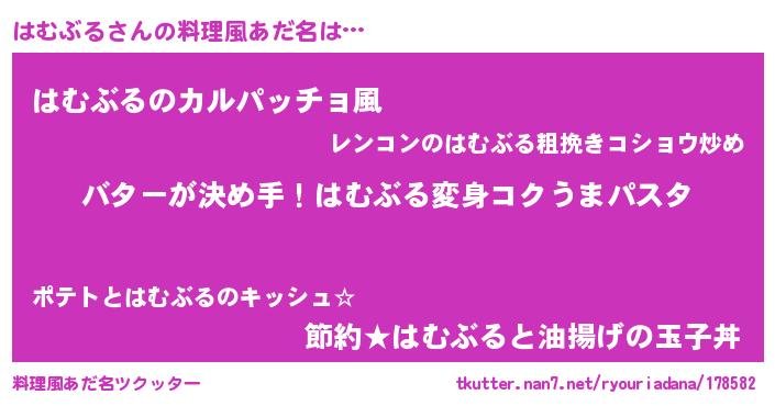 | ヒーロー風カッコイイあだ名 | 『慈愛の使者はむぶる』『仮面ハムダー』 |