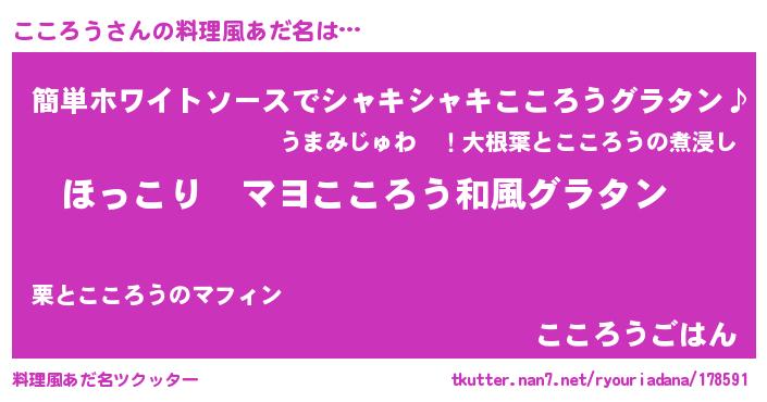| 男性向けラノベタイトル風あだ名 | 『この素晴らしい世界にこころうを!』 |