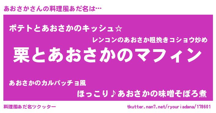 | 意味不明あだ名 | 『とにかく怪しいあおさか』 |