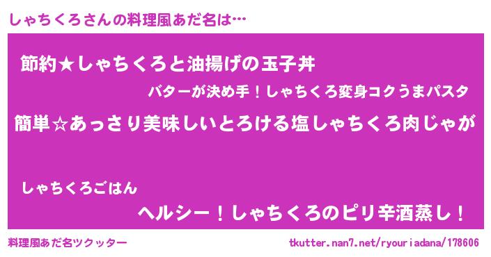 | ヘコむあだ名 | 『しゃちくろ(震え声)』『しゃにゅー』 |