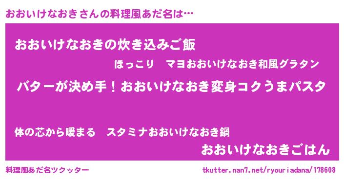 | 女子向けラノベタイトル風あだ名 | 『おおいけなおき恋絵巻』 |